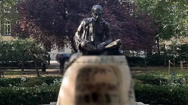 ಸೋಮವಾರ (ಸೆ.29) ಲಂಡನ್ ವಿಶ್ವವಿದ್ಯಾಲಯದ ಟ್ಯಾವಿಸ್ಟಾಕ್ ಸ್ಕ್ವೇರ್‌ನಲ್ಲಿ ಧ್ಯಾನಸ್ಥ ಭಂಗಿಯಲ್ಲಿರುವ ಮಹಾತ್ಮ ಗಾಂಧಿ ಪ್ರತಿಮೆ ಮೇಲೆ ವಿಕೃತಿ ಮರೆದಿದ್ದಾರೆ. ಪ್ರತಿಮೆಯ ಸ್ತಂಭದ ಮೇಲೆ ಭಾರತ ವಿರೋಧಿ ಬರಹಗಳು ಕಂಡುಬಂದಿದೆ. ಈ ಕೃತ್ಯವನ್ನು ಲಂಡನ್‌ನಲ್ಲಿರುವ ಭಾರತೀಯ ಹೈಕಮಿಷನ್ ತೀವ್ರವಾಗಿ ಖಂಡಿಸಿದ್ದು, ಪ್ರತಿಮೆಯ ಮೂಲ ಘನತೆಗಾಗಿ ಪುನಃಸ್ಥಾಪಿಸಲು ಪ್ರಯತ್ನಿಸುತ್ತಿದೆ. ಈ ಕುರಿತು ಈಗಾಗಲೇ ಸ್ಥಳೀಯ ಅಧಿಕಾರಿಗಳಿಗೆ ವರದಿ ಮಾಡಲಾಗಿದೆ ಎಂದು ತಿಳಿಸಿದೆ.