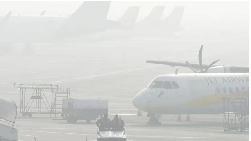 ದೆಹಲಿಯಲ್ಲಿ ಏರ್ ಕ್ವಾಲಿಟಿ ಇಂಡೆಕ್ಸ್ ನಲ್ಲಿ ಗಾಳಿಯ ಗುಣಮಟ್ಟವು 433 ಕ್ಕೆ ಕುಸಿದಿದೆ. ವಿಮಾನ ನಿಲ್ದಾಣದಲ್ಲಿ ದಟ್ಟವಾದ ಮಂಜು ಆವರಿಸಿದೆ. ರನ್ ವೇನಲ್ಲಿ ಗೋಚರತೆಯ ಮಟ್ಟ ತೀವ್ರವಾಗಿ ಕುಸಿದಿದೆ. ವಿಮಾನಗಳು ಟೇಕಾಫ್ ಆಗದಂಥ ಪರಿಸ್ಥಿತಿ ನಿರ್ಮಾಣವಾಗಿದೆ.