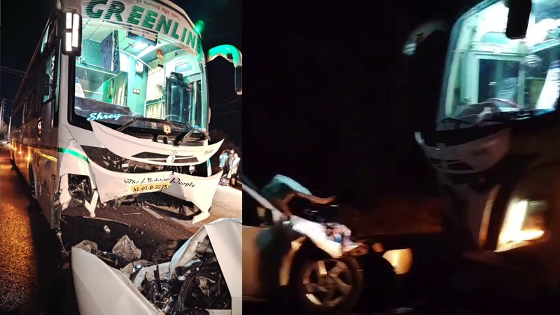 ಖಾಸಗಿ ಬಸ್ ಹಾಗೂ ಕಾರಿನ ನಡುವೆ ಮುಖಾಮುಖಿ ಡಿಕ್ಕಿ ಸಂಭವಿಸಿದೆ. ಡಿಕ್ಕಿ ರಭಸಕ್ಕೆ ಕಾರು ಸಂಪೂರ್ಣ ನಜ್ಜುಗುಜ್ಜಾಗಿದ್ದು, ಬೆಂಕಿ ಕೂಡ ಹೊತ್ತಿಕೊಂಡಿದೆ. ಈ ವೇಳೆ ಬೆಂಕಿ ಹಾರಿಸಿದ ಬಸ್ನ ಪ್ರಯಾಣಿಕರು ಗಾಯಗೊಂಡ ಕಾರು ಚಾಲಕನನ್ನ ಆಸ್ಪತ್ರೆಗೆ ಸಾಗಿಸಿದ್ದಾರೆ. ಬಳಿಕ ಸುಮಾರು 2 ಗಂಟೆ ಚಳಿಯಲ್ಲಿ ಒದ್ದಾಡಿದ್ದಾರೆ.