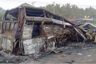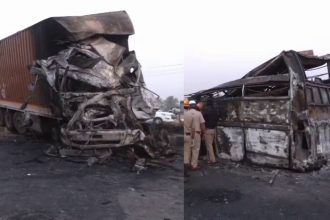 ಲಾರಿ ಡಿಕ್ಕಿಗೆ ಖಾಸಗಿ ಬಸ್ ಧಗಧಗ – 10 ಮಂದಿ ಸಜೀವ ದಹನ