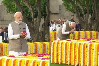 ರಾಜ್ಘಾಟ್ನಲ್ಲಿ ಮಹಾತ್ಮ ಗಾಂಧಿಗೆ ಗೌರವ ನಮನ ಸಲ್ಲಿಸಿದ ಮೋದಿ